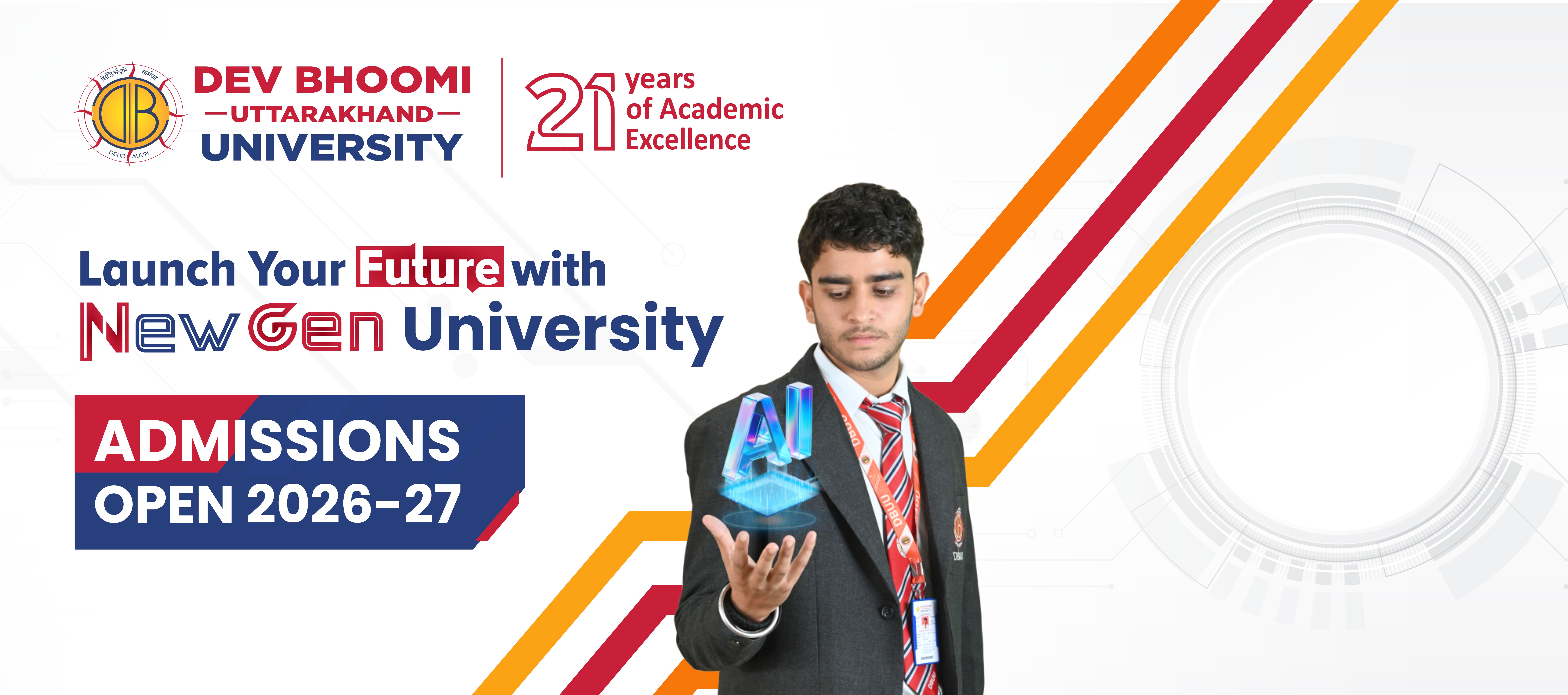 At Dev Bhoomi Uttarakhand University, you will experience an energy that flows through everything and everyone — from events, workshops, seminars, hackathons, annual festivals, technical competitions, guest lectures, conferences, sports, internships, and so much more.